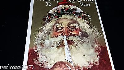 Title (ebay affiliate link): JULIUS BIEN OLD HOLIDAY postcard SANTA red white suit Feather Pen - HOLLY CROWN