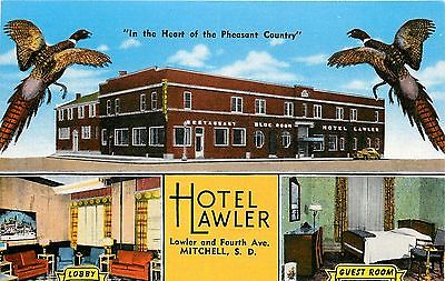 Title (ebay affiliate link): Mitchell SD~Hotel Lawler~Pheasants~Front from Street~Lobby~Guest Room~1940s
