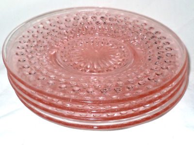 Title (ebay affiliate link): Vintage Pink Depression Glass Hobnail Pickle Plates 4