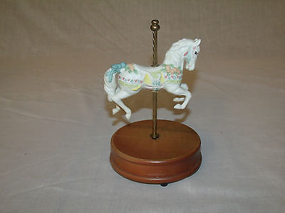 MUSIC BOX CAROUSEL Porcelain Horse Figurine on a Wooden Base 7 1/4" tall