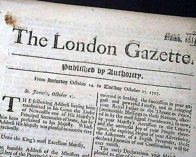 18rh Century World's Oldest NEWSPAPER 1727 London Gazette Over 285 YEARS OLD
