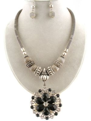Title (ebay affiliate link): WESTERN ANTIQUE SILVER BEADS CRYSTALS BIB NECKLACE SET