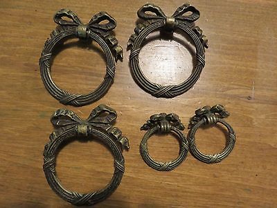 ANTIQUE VINTAGE 5 ORNATE CAST BRASS DRESSER DRAWER PULLS HANDLES FURNITURE