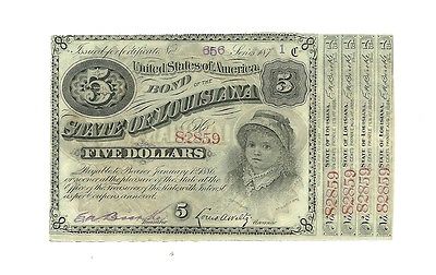 Title (ebay affiliate link): Post-Civil War $5.00 State of Louisiana "BABY BOND" 1870s UNC