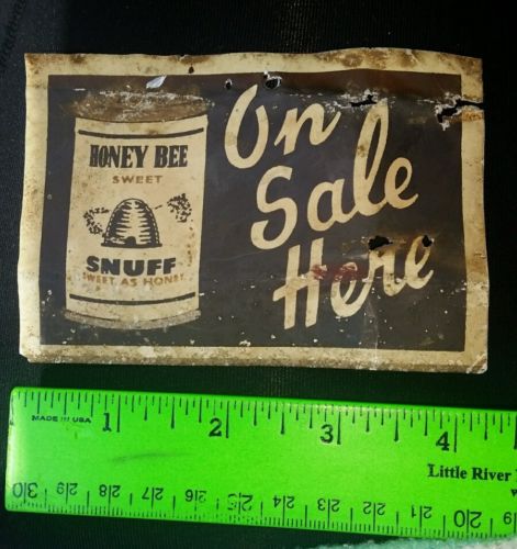 Vintage Honey Bee Sweet Snuff on Sale here metal sign 4 1/4" by 3" tobacciana