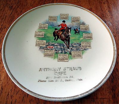 Title (ebay affiliate link): Antique 1914 Calendar Plate~Advertising ANTHONY STRAUB CAFE Oakley Ohio