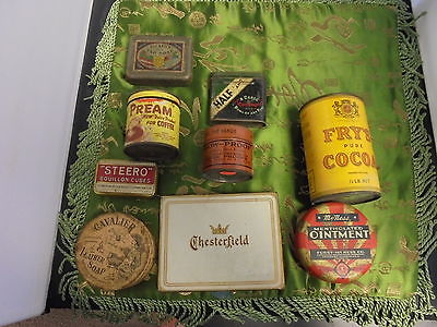 Lot of 9 Vintage Tins Advertising Tar Soap Chesterfield Steero Kitchen Film Prop