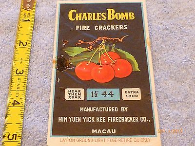 Title (ebay affiliate link): Vintage Firecracker Pack Label "CHARLES BOMB" (3" x 5") Him Yuen Yick Kee MACAU