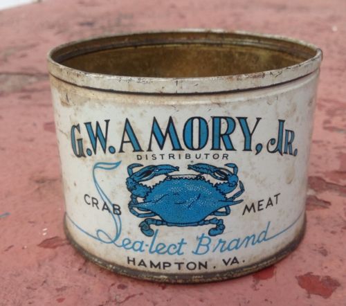 Title (ebay affiliate link): RARE Vintage G.W. AMORY, Jr. 1 Lb Crab meat Tin Can W/ Pic Of Crab Hampton, VA.