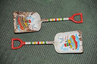 2 OHIO ART 1940s TIN LITHO BEACH SAND SHOVELS TOY STEAM BOAT TOOT TOOT
