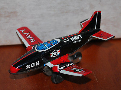Vintage Tin Friction Navy Jet Plane VF-127 - Made in Japan - 4" Long