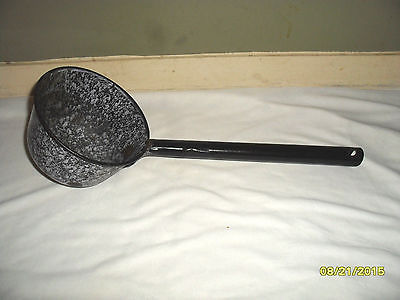 Nice Vintage Black and Gray Enamelware Drinking Water Ladle Primitives