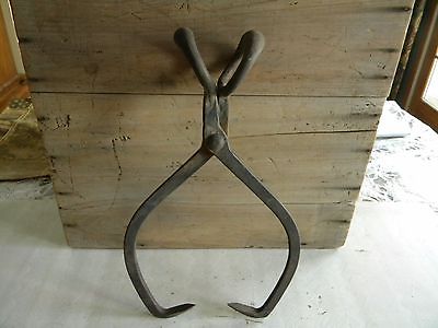 Antique Vintage Primitive Iron Farm Tool, Ice Block Tongs 16"
