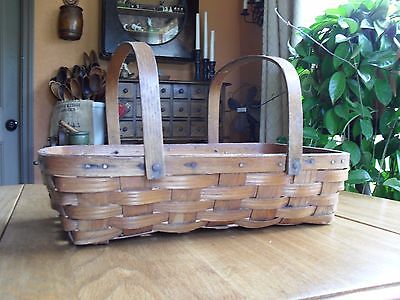 Title (ebay affiliate link): EARLY ANTIQUE OLD SPLIT BENT OAK WOODEN SWING HANDLE PRIMITIVE GATHERING BASKET