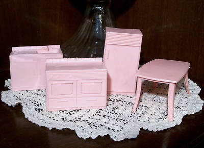 * VINTAGE ANTIQUE MPC DOLL HOUSE PINK KITCHEN SET LOT