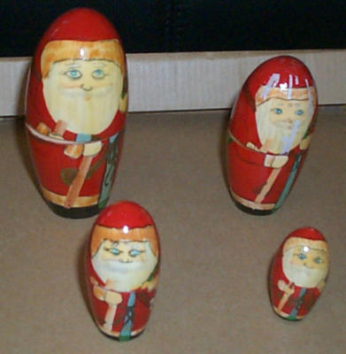 Title (ebay affiliate link): Antique Vintage Russian 4 Santa Claus Matryoshka Dolls!