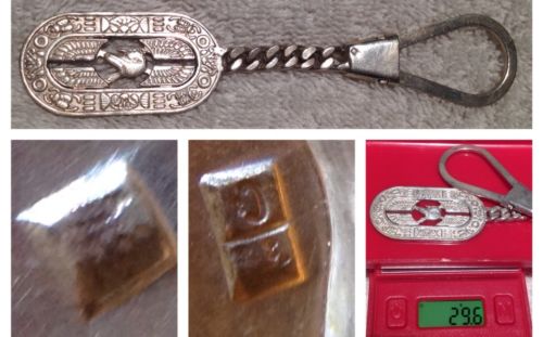 Title (ebay affiliate link): Vintage Egypt Sterling Silver Ancient King Tut Hieroglyphs Key Chain Pendant 29g