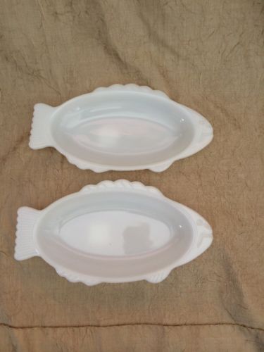 Title (ebay affiliate link): PERFECT! Set of 2 GLASBAKE Milk Glass Oven Proof Indv 9-1/4" Fish Dinner Plates