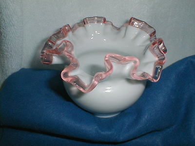 VINTAGE FENTON PINK CREST MILK GLASS VASE 4" X 5 1/2"