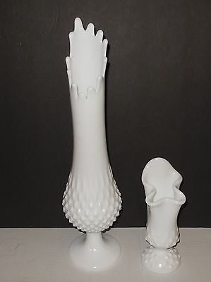 Set of 2 Fenton Hobnail Milkglass Vases Hankerchief and Swung