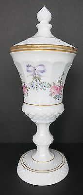 VINTAGE 1950'S WESTMORELAND ROSES & BOWS 12.5" MILK GLASS URN W/ LID