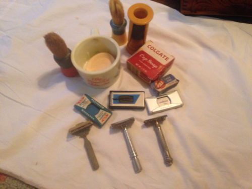 Vintage Shaving Lot, Safety Razors, Old Spice Milk Glass Cup,Shaving Brushes