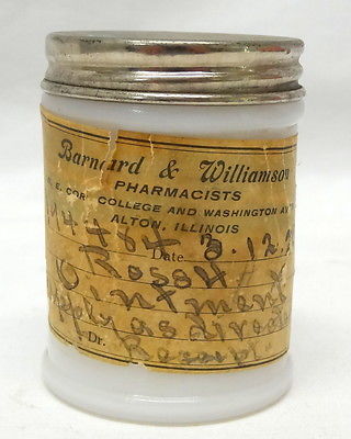 Title (ebay affiliate link): RARE Vintage Dated 1929 Prescription OINTMENT Milk Glass Jar With Metal Lid
