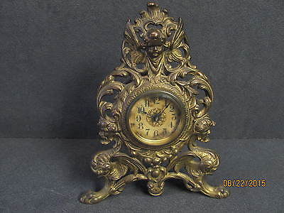 Antique Cherub Clock Art Nouveau Ornate Gold Iron Shelf Mantle RUNS