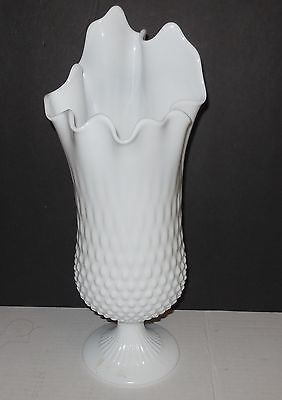 Large Fenton Milkglass Hobnail Swung Footed Vase 14"