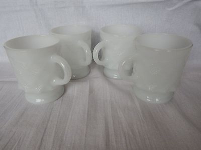 VTG 4 Anchor Hocking Kimberly Milk Glass Diamond Pattern White Coffee Cups Mugs