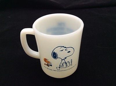 Fire King Snoopy Mug Coffee Break D Handle Milk Glass
