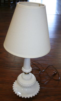 HOBNAIL MILK GLASS ELECTRIC BEDSIDE TABLE LAMP
