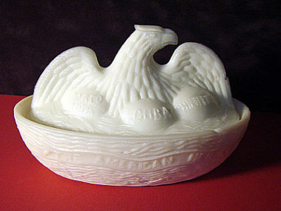 AMERICAN EAGLE COMMEMORATIVE Mustard MILK GLASS 1900
