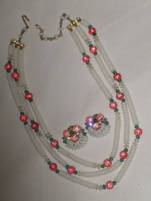 VINTAGE WHITE MILK GLASS BEADED NECKLACE EARRINGS D53