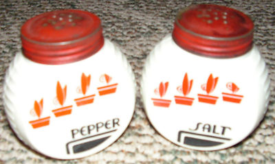 VINTAGE Milk Glass SALT & PEPPER SHAKERS COLORFUL Retro
