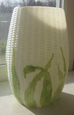 Old EAPG Libbey Art Glass Corn Vase Milk White Green