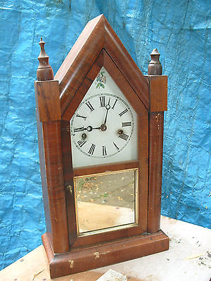 antique mantel clock STEEPLE CLOCK WITH A BACK LABLE (DUE FOR SERVICE