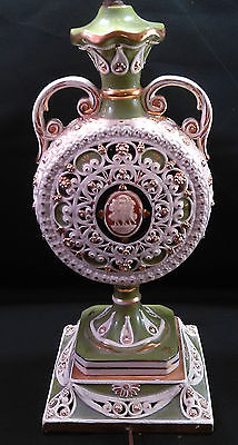 HUGE 33in. CAPODIMONTE 7280 Italy 4 or T 280 Porcelain Lamp Green Spongeware