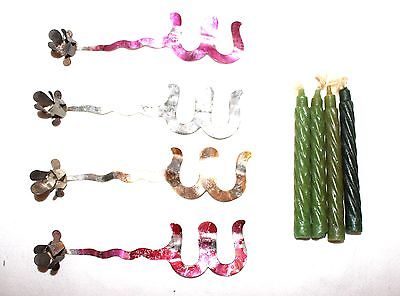 3rd Set of four early 1900s "E" Shaped Tin Flashed Candle Holders. Candles.