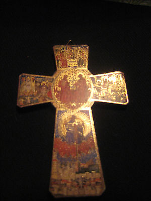 antique wooden cross with Jesus collage Christmas ornament or wall decor