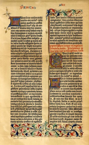 Title (ebay affiliate link): 1894 GUTENBERG BIBLE SHEET 1455 FACSIMILE Antique Chromolithograph Print