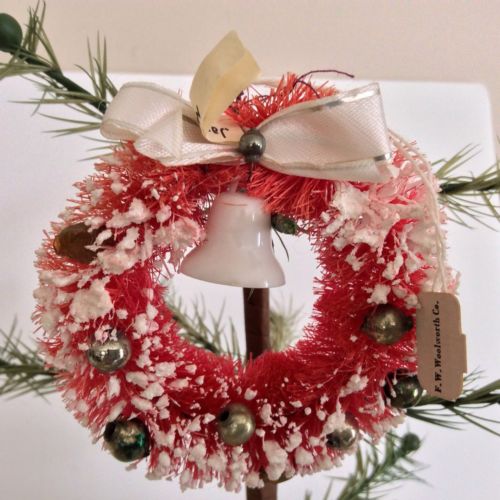 Title (ebay affiliate link): Bottle Brush Wreath With Glass Balls - Red - Original Woolworth's Tag Attached