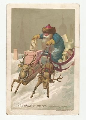 Title (ebay affiliate link): 1880's/90 Schwartz Bros. Toy Bazaar SANTA CLAUS Christmas Advertising Trade Card