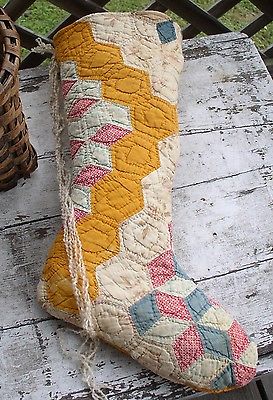 Title (ebay affiliate link): Stocking Vintage Quilt Circa 1880 Tumbling Blocks Petite~Hand Stitched 19"x8.5"