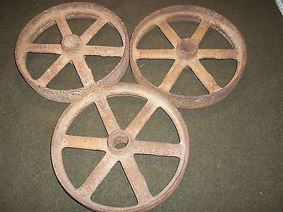 Lot 3 Vintage Antique 6 Spoke Industrial Cast Iron Cart Wheels 9 inch Diame 3141
