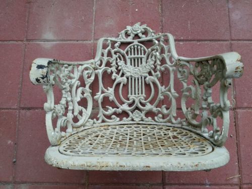 Title (ebay affiliate link): Antique Cast Iron Victorian Garden Patio Furniture royal Design Chair. No legs