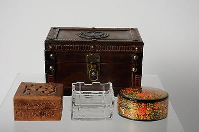 Title (ebay affiliate link): Lot of 5 Trinket Snuff Pill Ring Boxes Inlaid Leather Glass Wood