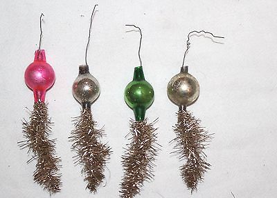 Four 1890s Silver Tinsel & Glass Ornaments. Beads, with Silver Tinsel Tail.