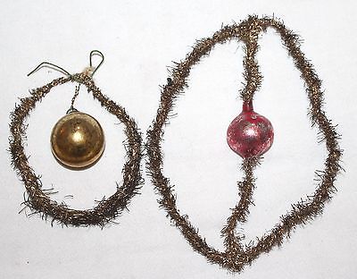 Two1890s Silver Tinsel & Glass Ornaments. Beads in silver Tinsel Ovals.