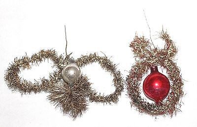 Title (ebay affiliate link): Red & Silver Ornaments. Two 1890s Silver Tinsel & Glass Ornaments.